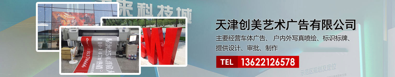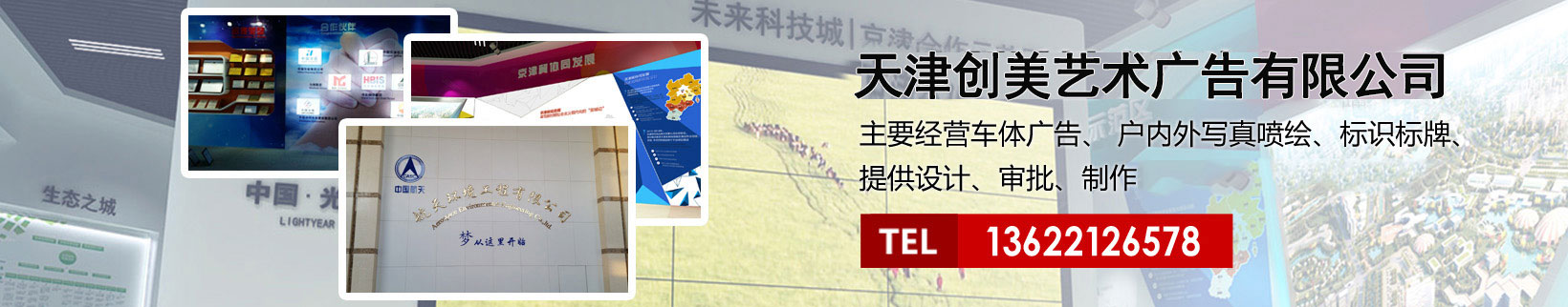 天津創(chuàng)美藝術(shù)廣告有限公司主要經(jīng)營(yíng)車體廣告、 戶內(nèi)外寫真噴繪、標(biāo)識(shí)標(biāo)牌、提供設(shè)計(jì)、審批、制作、發(fā)布的服務(wù)。